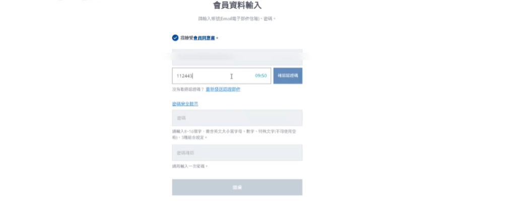 完成上述步骤后,玩家需设置账号密码,然后点击继续。账号已成功注册,登录后系统会显示地区为台湾。