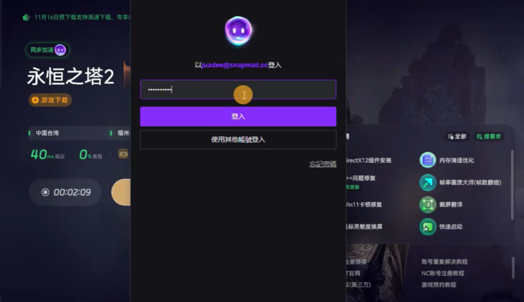 为了保障下载过程顺利无卡顿,小编建议玩家使用专业的网络加速工具,这里以奇游加速工具为例。开启奇游后搜索永恒之塔2对其进行加速,能有效优化网络环境,让玩家更迅速地访问游戏官网,为后续的注册和下载环节做好铺垫。