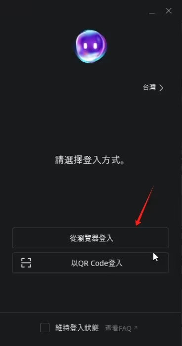 PURPLE平台安装完成后就可以进行账号登录与游戏下载操作了。首先启动PURPLE平台,在界面上找到全球选项并点击,然后从中选取中国台湾服务器。