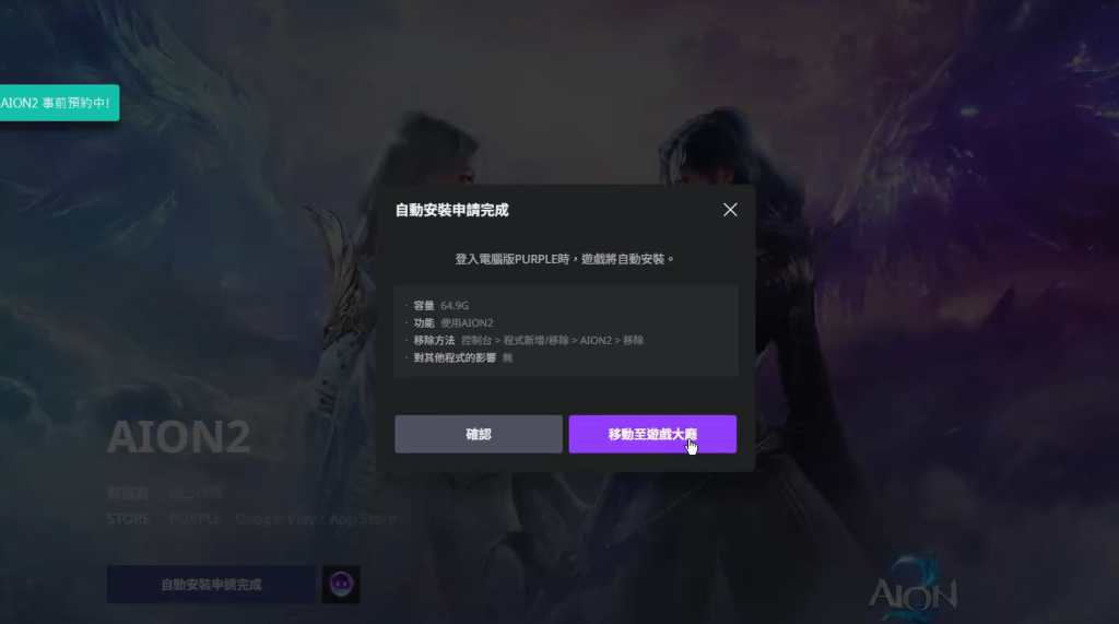 成功登录PURPLE平台后,在游戏库中找到永恒之塔2,点击安装按钮,开始下载游戏。