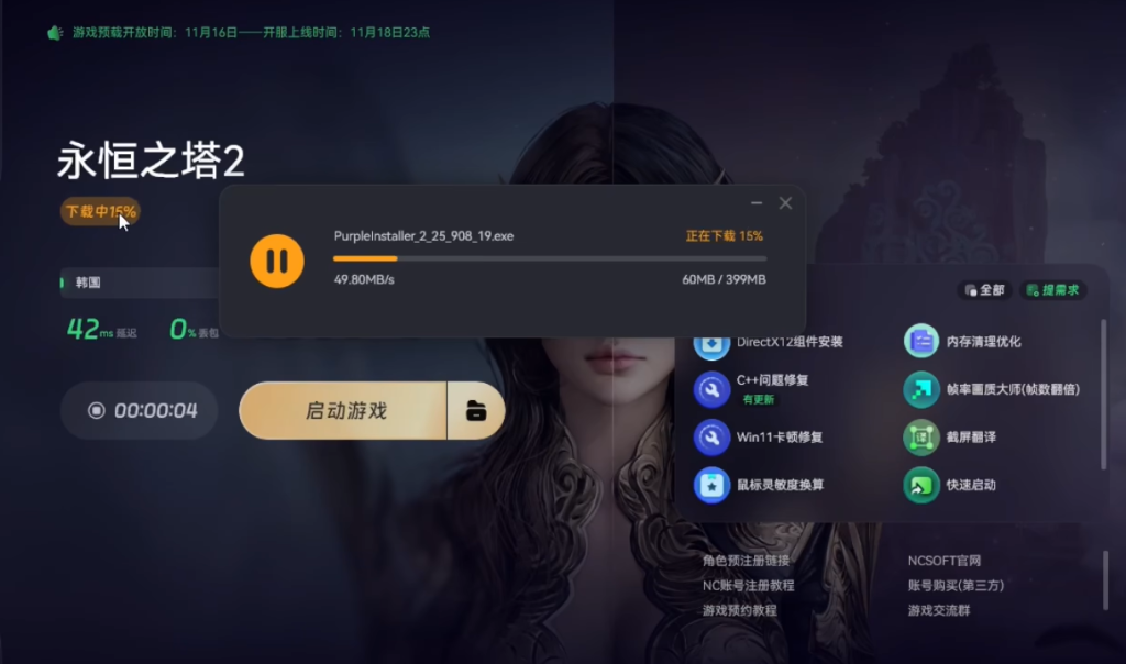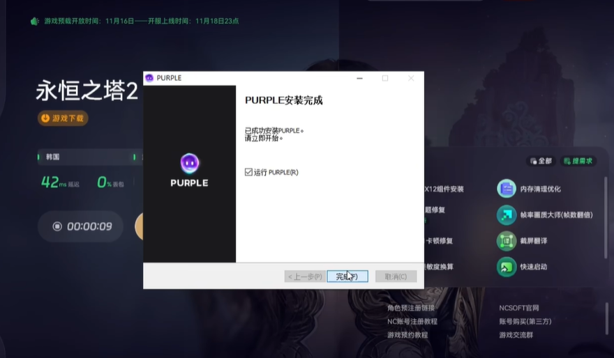 要下载永恒之塔2,首先得安装purple平台,是NC公司官方的游戏启动平台。如果不清楚具体下载途径,可以使用奇游加速工具来操作。打开奇游加速工具,在搜索栏输入永恒之塔2,然后点击一键加速。