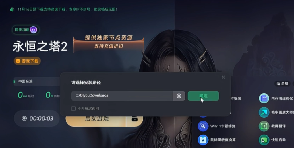 登录成功后,在页面找到永恒之塔2,点击进入,右下角点击预约安装下载游戏。