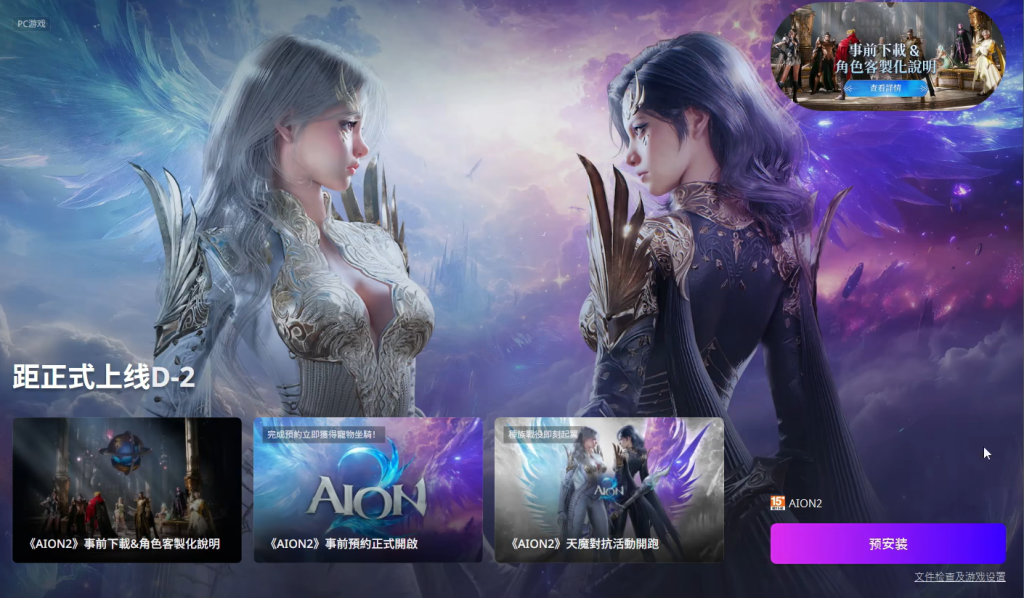完成注册并成功登录客户端后,进入启动器界面。在这里找到永恒之塔2游戏选项,点击预约安装按钮,系统便会自动开始进行游戏的安装准备工作。