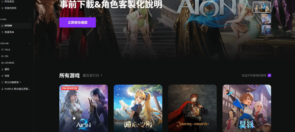 启动 Purple 平台后,进入主界面。在首页的显著位置,很容易就能发现《永恒之塔2》的游戏图标。找到图标后,点击图标旁边的下载按钮,游戏客户端的下载就会自动开始。