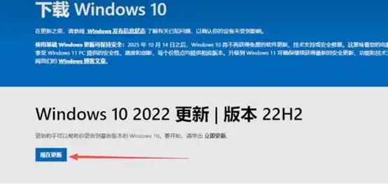 如果系统版本号不是22H2,我们只需要进入微软网页,在主页就有显示更新22H2,点击现在更新,下载完成后即可解决。