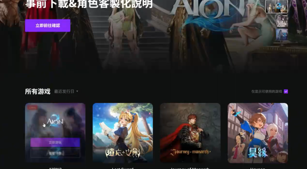 双击桌面上的Purple图标,启动平台。进入平台后,在首页位置便能看到永恒之塔2》的游戏图标。