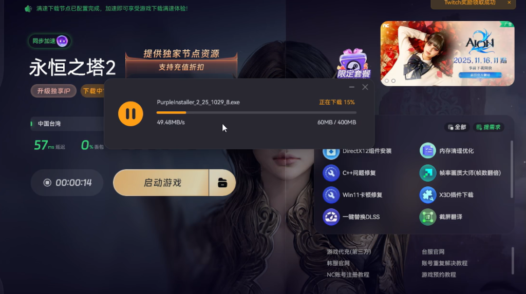 在着手下载游戏前,部分用户可能会遭遇在Purple平台找不到永恒之塔2,或者点击游戏后自动跳转至网页的困扰。首先打开奇游加速工具,在搜索栏输入永恒之塔2,然后选择台服节点进行加速操作,通常就能顺利解决问题。