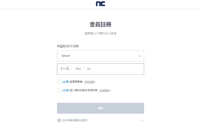 注册方式选“使用电子邮箱注册”,地区那一栏注意保持默认,不要改动——因为我们之前加速的是台湾省服,系统一般会自动识别。下面的出生日期按实际填写就行,建议年龄别填太小。