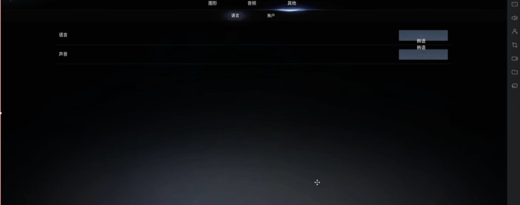 首次启动游戏时默认显示韩文界面,通过右上角设置菜单选择语言选项,切换至简体中文就可以正常游玩。