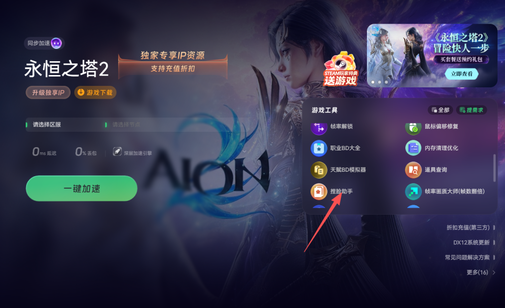 在加速工具的右侧界面,可以发现一系列实用工具,其中就包括职业BD大全和捏脸助手。这些工具对于玩家来说十分有帮助,尤其是捏脸助手,能帮助我们打造出心仪的角色形象。