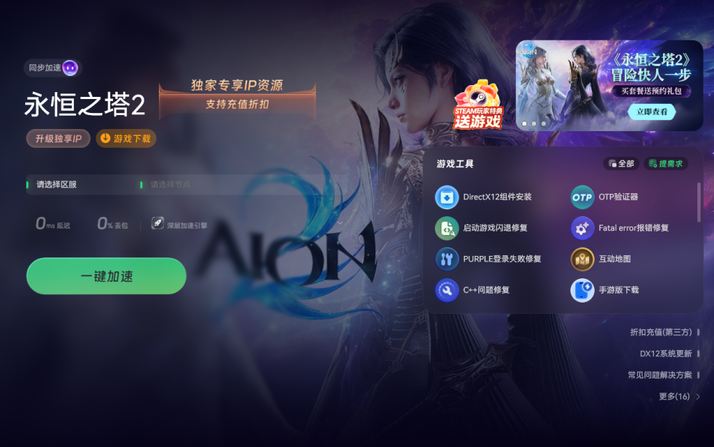 想要获取捏脸数据,需要借助奇游加速工具。打开奇游加速工具后,在搜索栏中准确输入永恒之塔2,然后点击加速按钮,为游戏运行营造一个良好的网络环境。